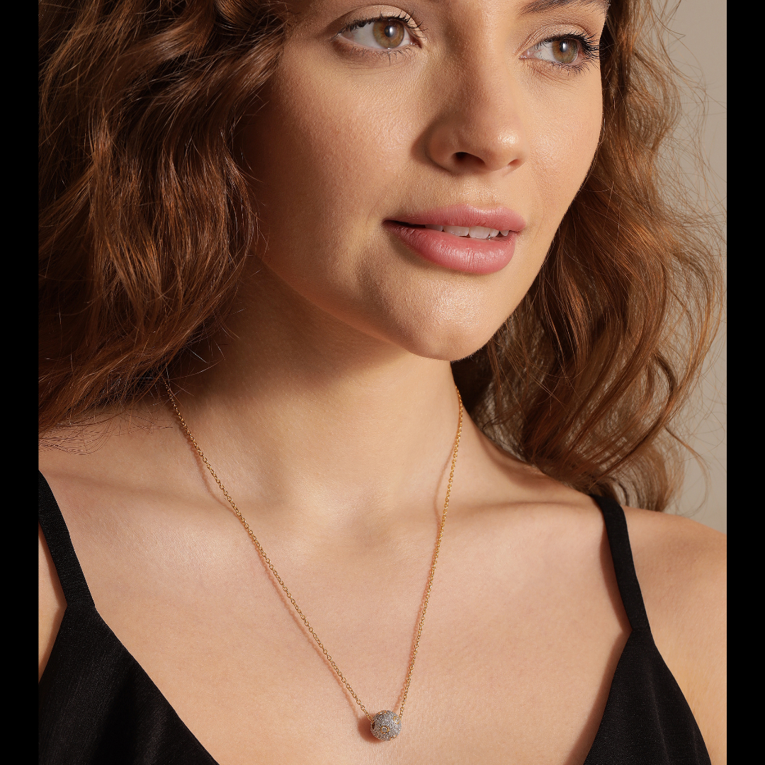 Illuminate your look with our Radiant Sphere Necklace, a striking piece that showcases a beautifully crafted zircon-studded sphere pendant. Suspended from a luxurious gold-plated chain, this necklace radiates elegance and sophistication.